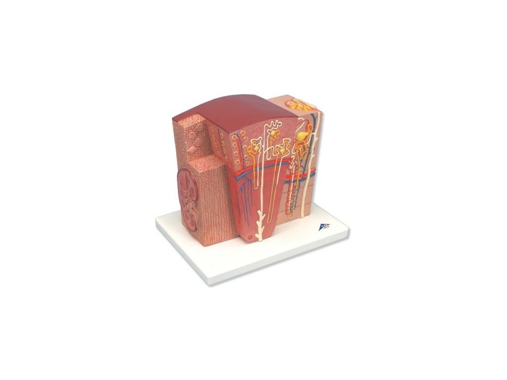 Tento velmi podrobný model ukazuje značně zvětšené morfologické / funkční ledvinové jednotky.
