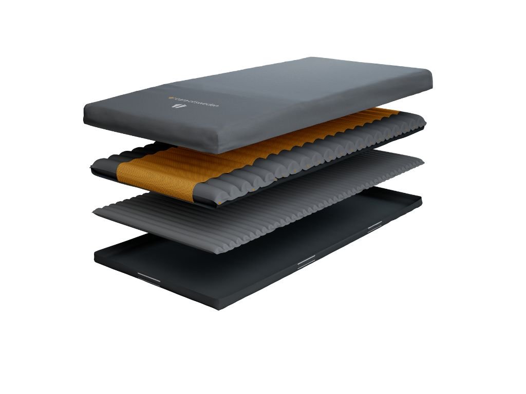 Součástí je také bezpečnostní matrace. Díky systému dvou matrací na sobě jsou eliminovány střižné a třecí síly, které patří mezi faktory vedoucí ke vzniku dekubitů.