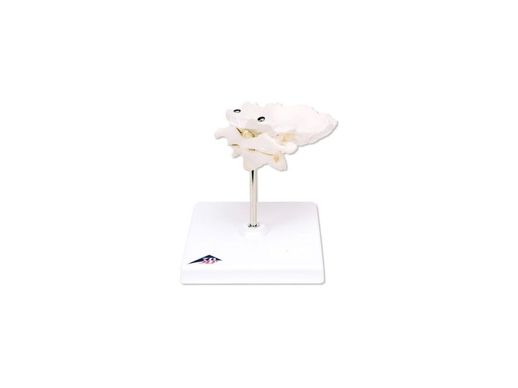 Tato vysoce kvalitní anatomická replika atlasu a axisu s týlní kostí je spojená drátkem dohromady na odnímatelném stojanu. Tato replika je skvělá pro detailní studii těchto kostí.