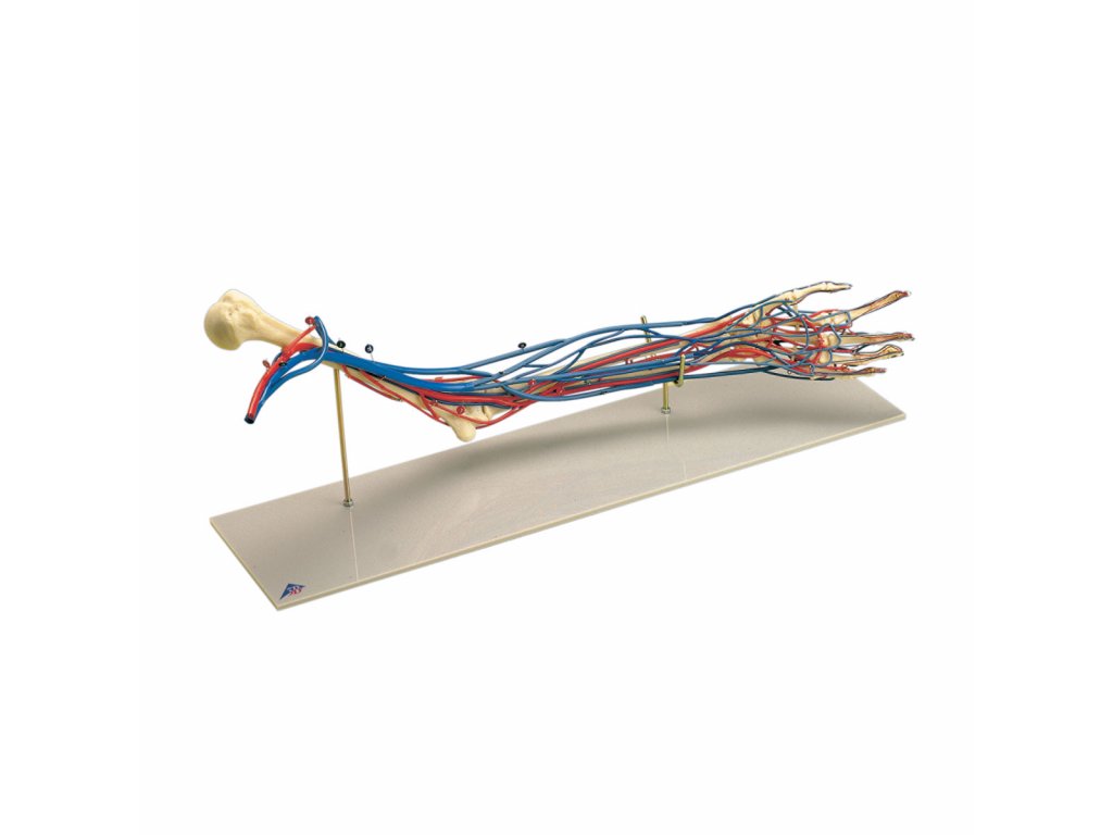 Tento model levé paže a ruky je vyhotoven v reálné velikosti. Ta je částečně ohnutá a zobrazuje brachiální, radiální a ulnární artérie, s příslušnými cévami. Kompletní oběhový systém je pozorovatelný na dlani i hřbetu ruky.