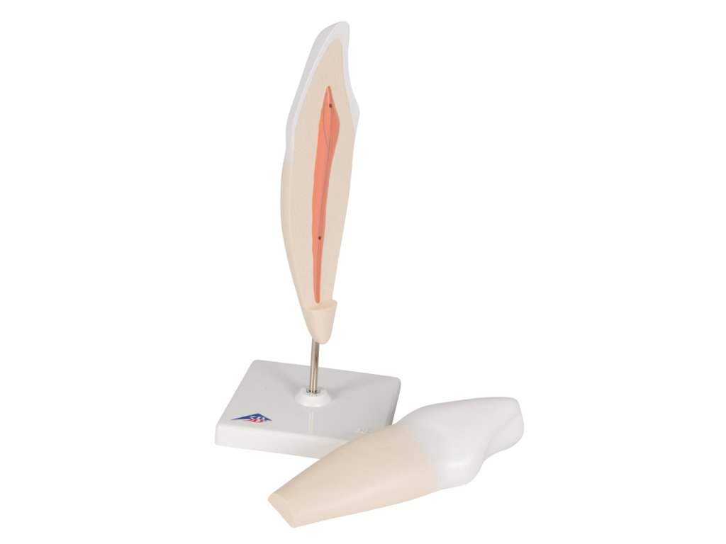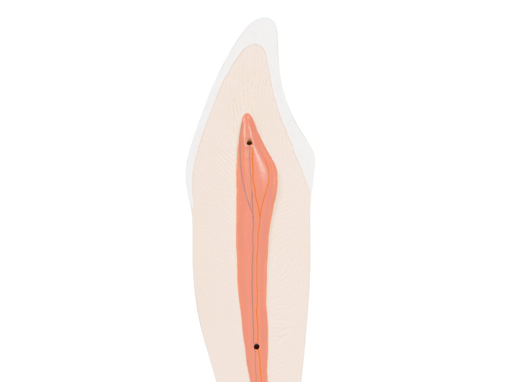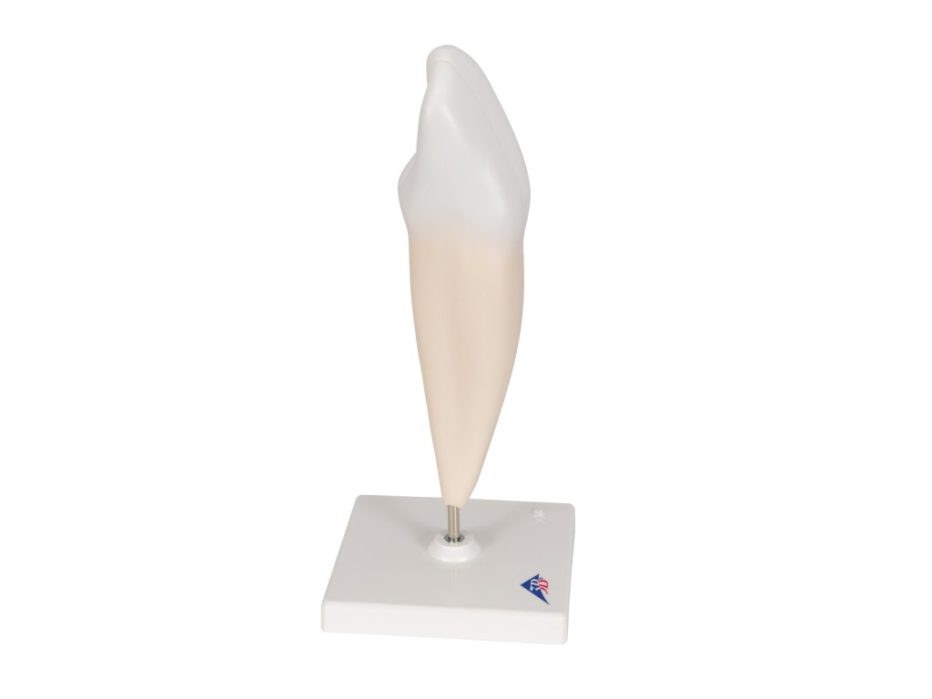 Model lidského zubu je praktickou vzdělávací pomůckou pro budoucí zubaře. Tento model znázorňuje spodní špičák. Je podélně dělený, takže je možné prozkoumat i vnitřní struktury zubu. Velikosti modelů zubů v nabídce se pohybuje mezi 23-29 cm.