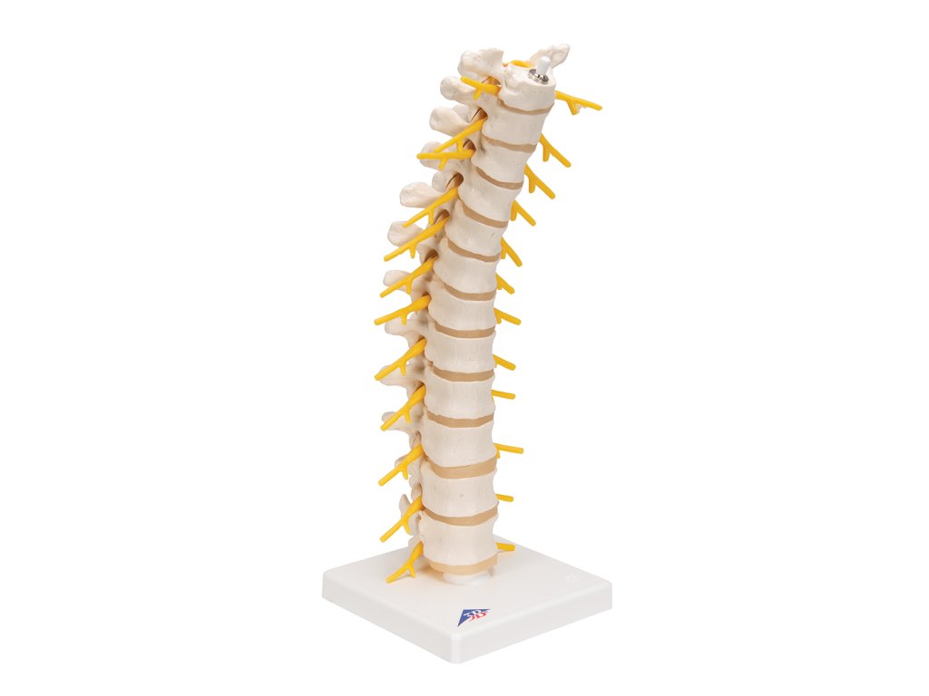 Tato replika hrudní páteře se skládá ze 12 hrudních obratlů s meziobratlovými ploténkami, hrudních nervů a míchy. Tento kvalitní model je cenově dostupný a anatomicky přesný.