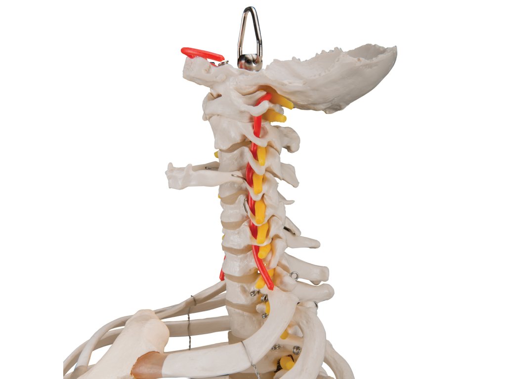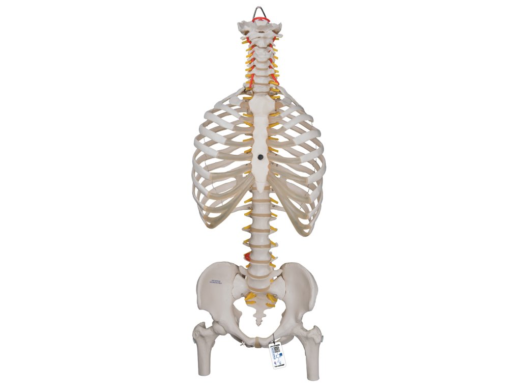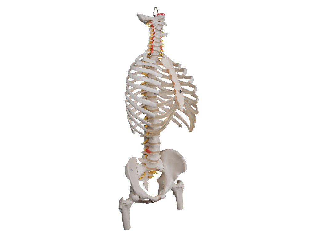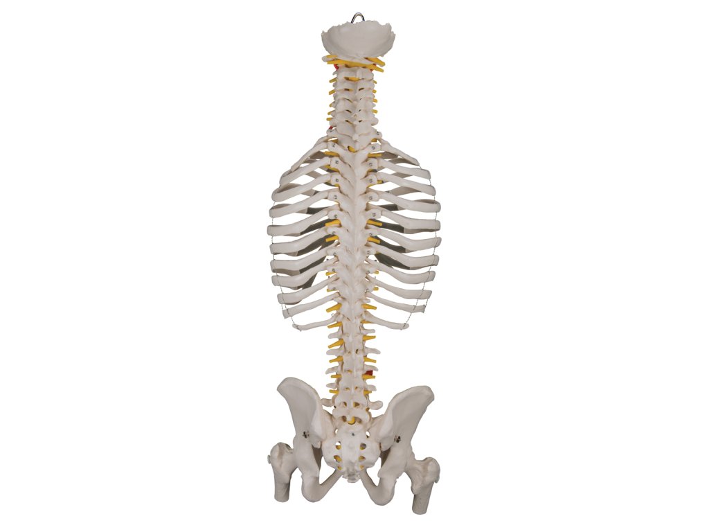 Model páteře je ideální pomůcka pro studium anatomie. Ohebná páteř s žebry zobrazuje interakce žeber, páteře a souvisejících struktur. Zpracování je velice realistické a přesné. Model je navíc vyroben z odolného materiálu.