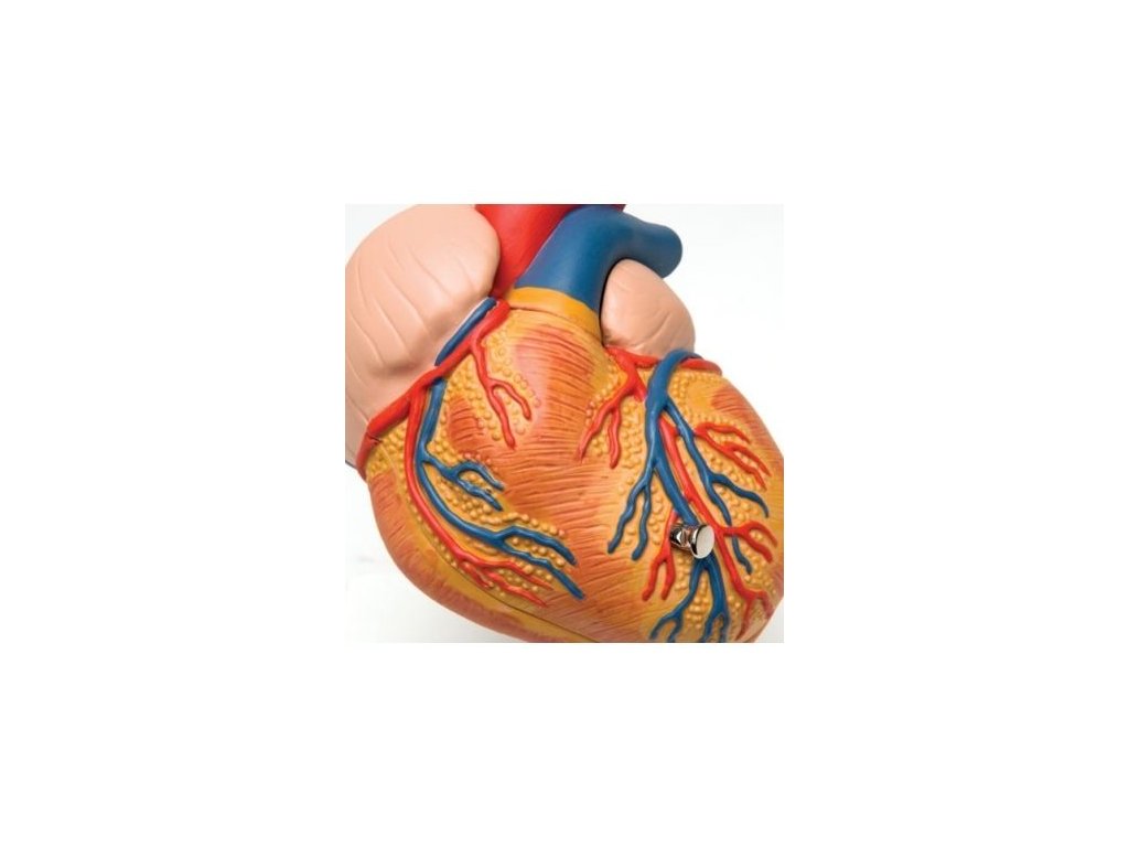 Tento model lidského srdce ukazuje dlouhodobý vliv zvýšené srdeční činnosti v důsledku vysokého krevního tlaku. Svalová stěna levé srdeční komory je značně zesílená a špička srdce je viditelně zakulacená. Model je rozložitelný, což umožňuje zkoumat nejen vnější, ale také vnitřní struktury tohoto orgánu.