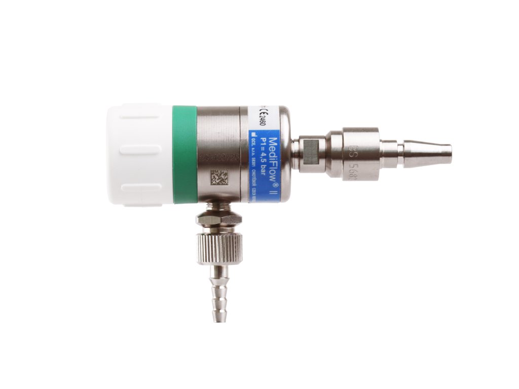 Pomocí vstupní rychlospojky (CZ/SK standard) se průtokoměr s vestavěným redukčním ústrojím připojuje k terminální jednotce potrubního rozvodu medicinálních plynů nebo k medicinálnímu redukčnímu ventilu pomocí nástavce.