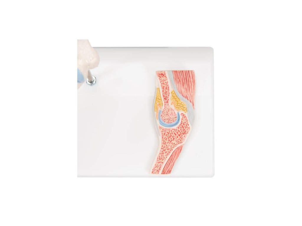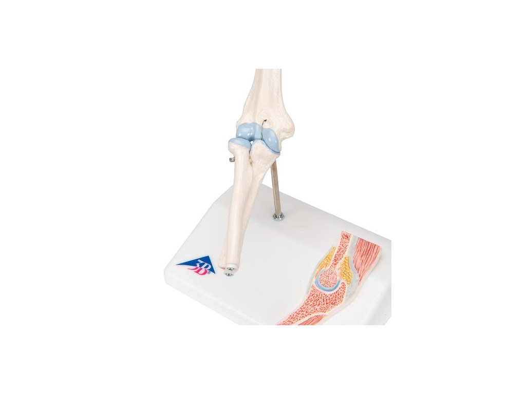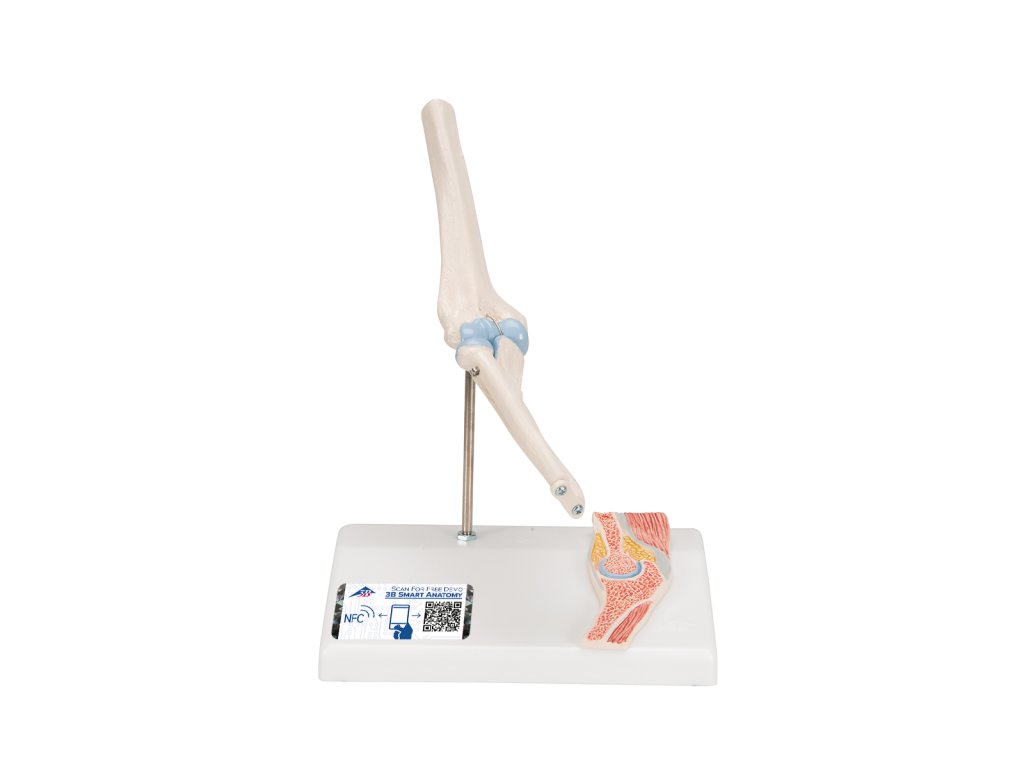 Tento model loketního kloubu je praktická vzdělávací pomůcka, která pomáhá při studiu anatomie a fyziologie kloubu. Je tvořen kostí pažní, loketní a vřetenní. Model je navíc doplněn o chrupavku, kterou pro lepší odlišení znázorňuje modrá barva.