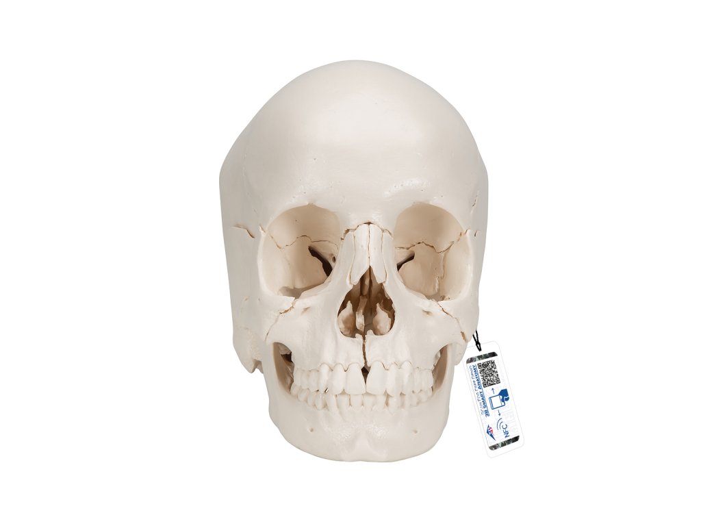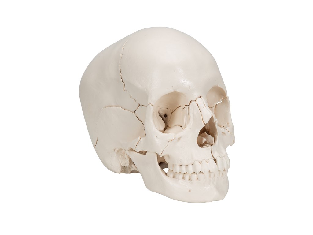 Věrná reprodukce reálné lidské lebky se skládá z 22 individuálních kostí. Kosti mohou být lehce složeny pomocí jednoduchých spojek.