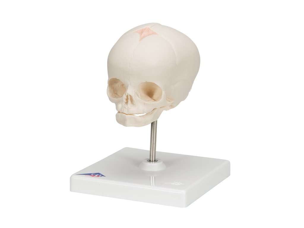 Anatomie lebky plodu lze snadno studovat na této realistické replice. Model je originálním odlitkem lebky plodu ve 30. týdnu těhotenství a ukazuje charakteristiku vývoje před narozením.
