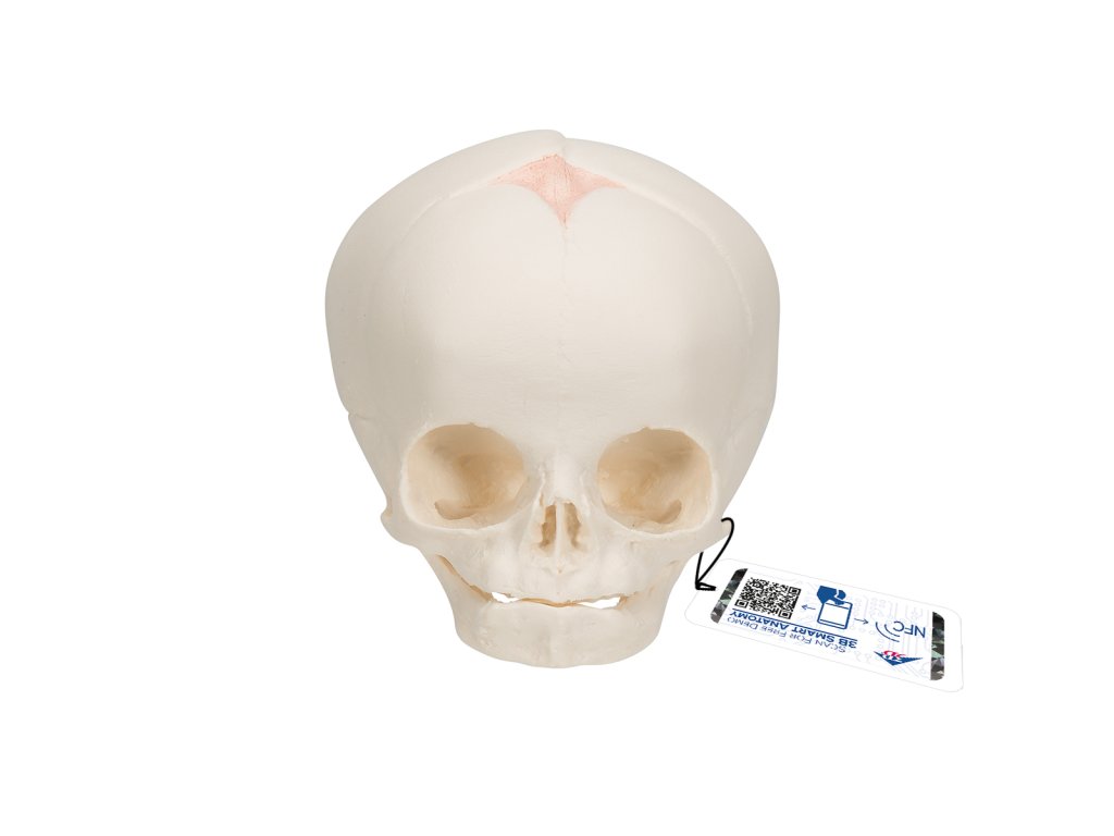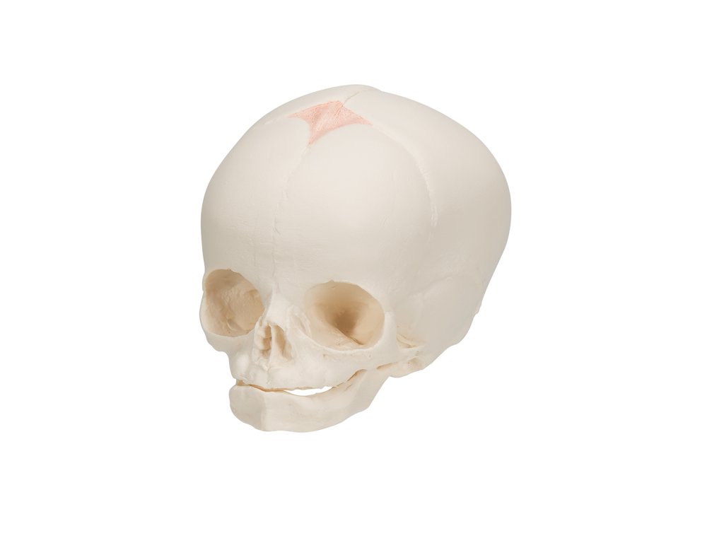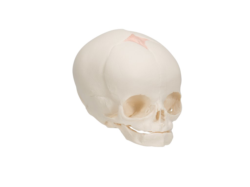 Na této lebce plodu jsou zřetelně viditelné fontanely, které postupem času procházejí procesem osifikace a mění se v kost. Délka kostěných švů na lebce plodu reprezentuje vývojový proces a spojuje jednotlivé kostní pláty, jak dítě stárne.