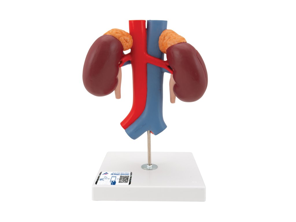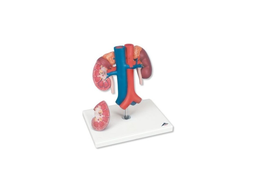 Tento model ukazuje ledviny s nadledvinami, vývody močovodů, ledvinové cévy a velké cévy umístěné blízko ledvin ve skutečné velikosti. Přední polovina pravé ledviny může být odejmuta pro odhalení ledvinné pánvičky, ledvinných kalichů, ledvinové kůry a ledvinové dřeně.