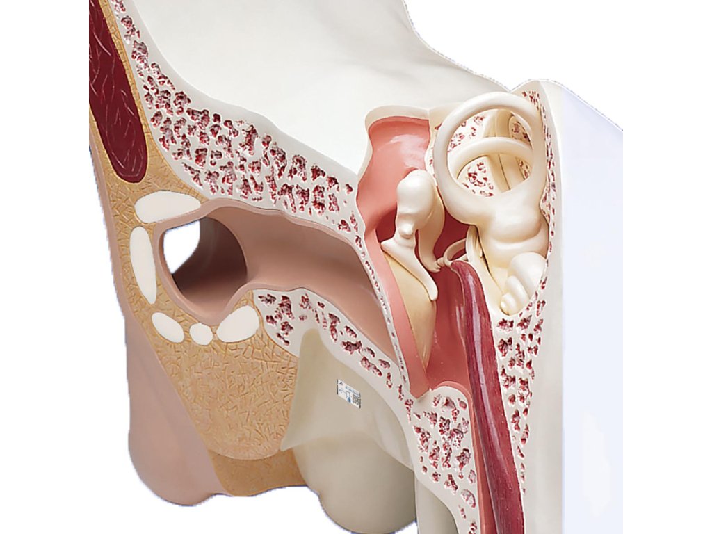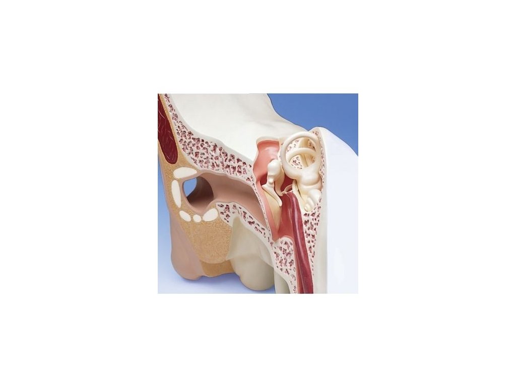 Tento 15x zvětšený a třídílný model ucha je unikátní vzdělávací pomůckou. Je vhodný pro muzea a speciální sbírky stejně tak, jako pro velké posluchárny a konference. Znázorňuje vnější, střední a vnitřní ucho.