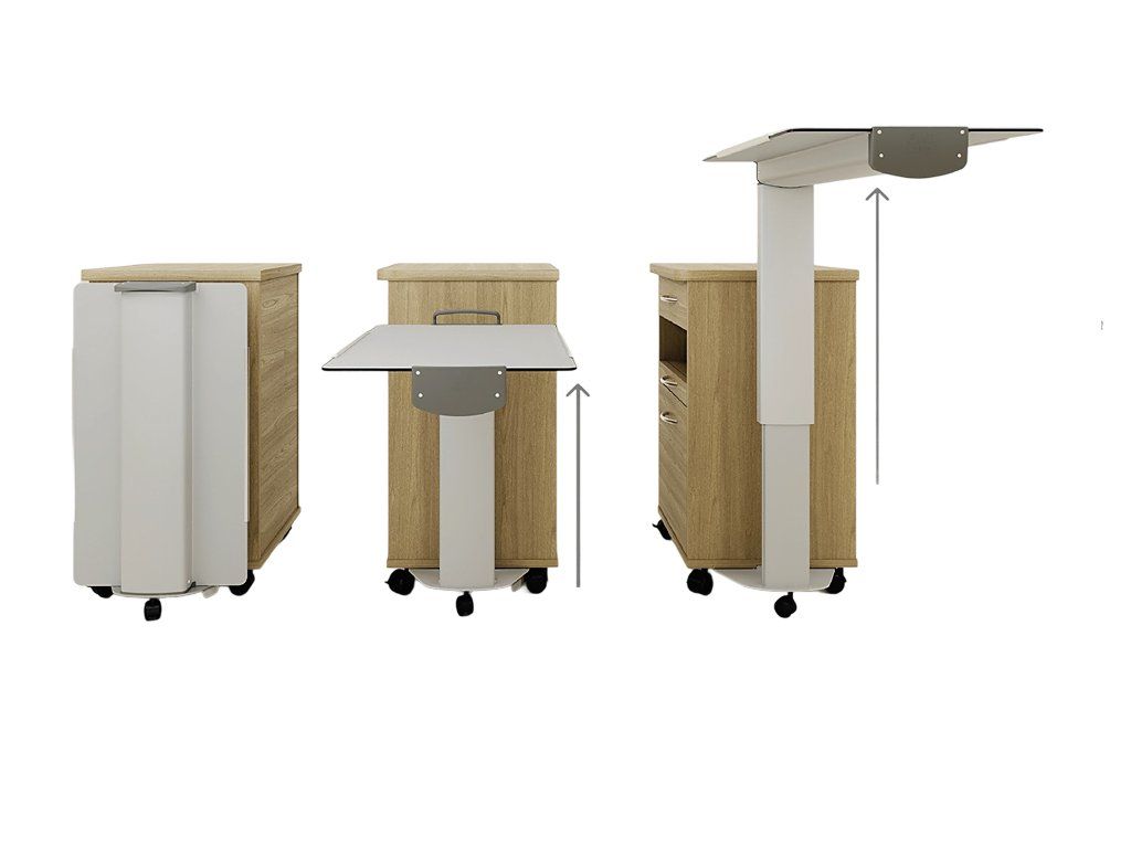 Noční stolek NT Due-T 310 je perfektním doplňkem pečovatelských lůžek. Nabízí úložný prostor a snadno přístupné zásuvky a přihrádky. V kombinaci s jídelním stolkem Due-T vzniká funkční nábytkové řešení, které lze jednoduše přizpůsobit aktuálním potřebám uživatele.