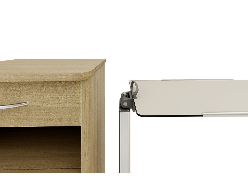 - Dle aktuálních potřeb lze bez nutnosti použití nářadí instalovat na pravou nebo levou stranu nočního stolku