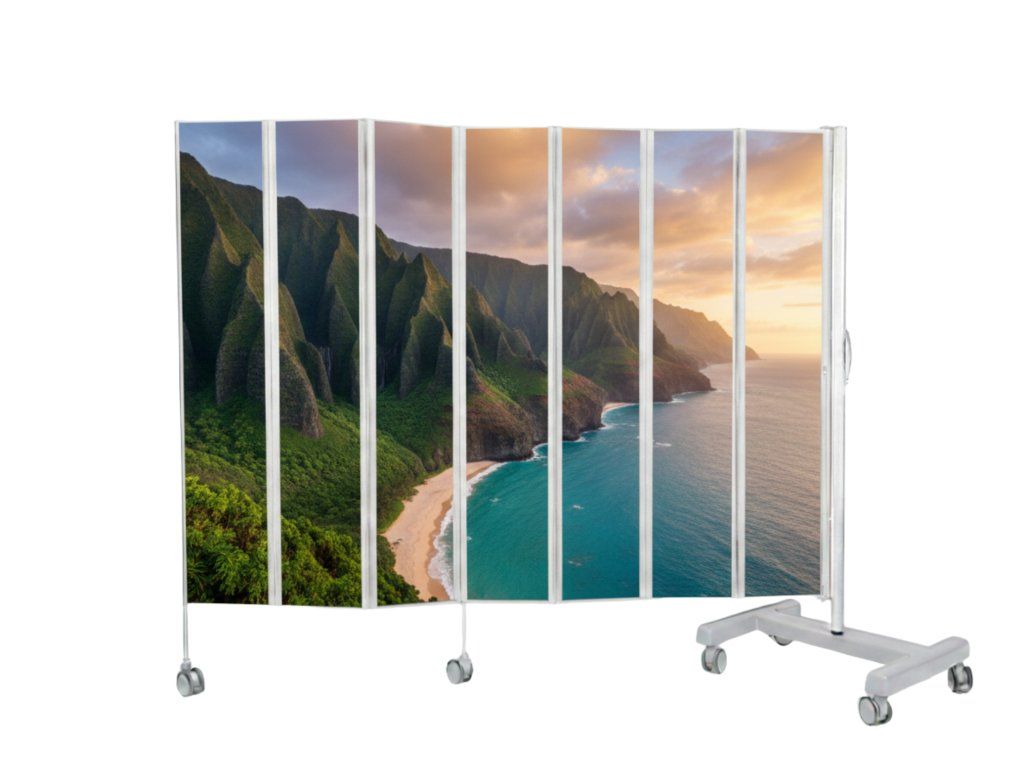 V základní variantě je paraván možný připevnit pouze ke stěně. V případě potřeby mobilního paravánu je možné dokoupit pojízdný stojan (není součástí skládací zástěny).