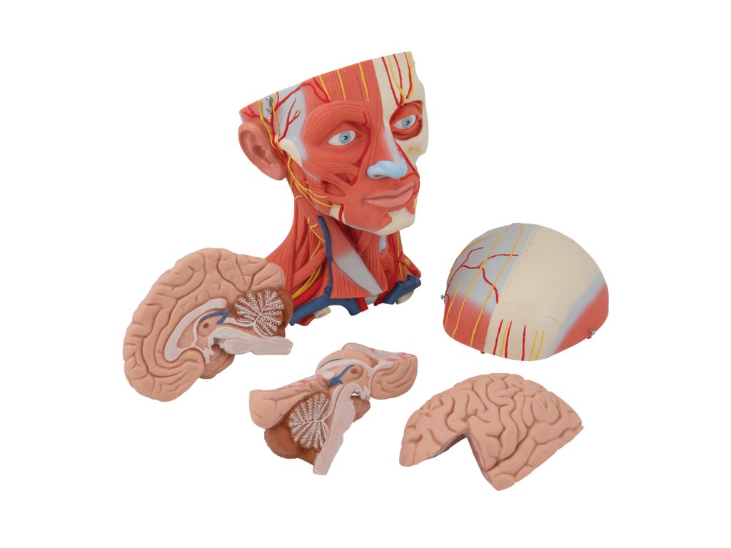 Tento model umožňuje pozorovat a detailně zkoumat žvýkací a mimické svaly a také svaly krku. Na modelu jsou zvýrazněné také nervy a cévy, což ještě lépe dokresluje anatomické struktury spojené s lidským tělem.