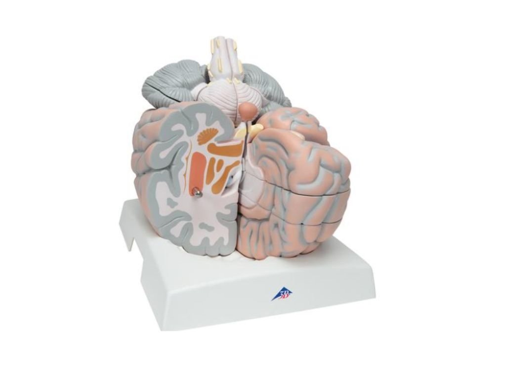 Komplexní model mozku, který může být velmi užitečnou pomůckou při učení, zejména pro velké skupiny studentů. Viditelné jsou všechny struktury mozku a mozkových komor.